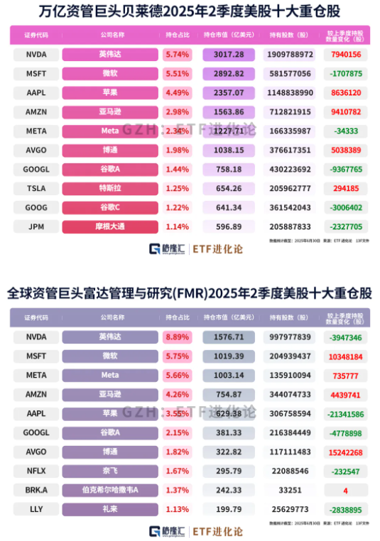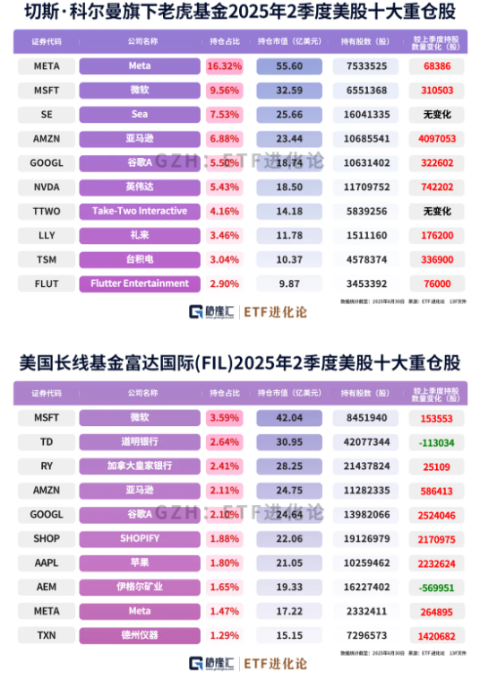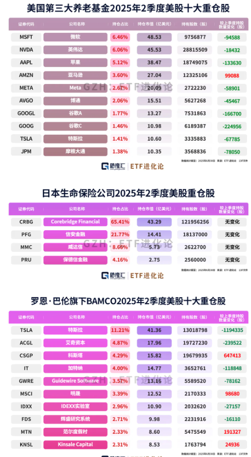 美國證監會網站顯示,海外機構公布了截至2025年二季度末的美股持倉數據。