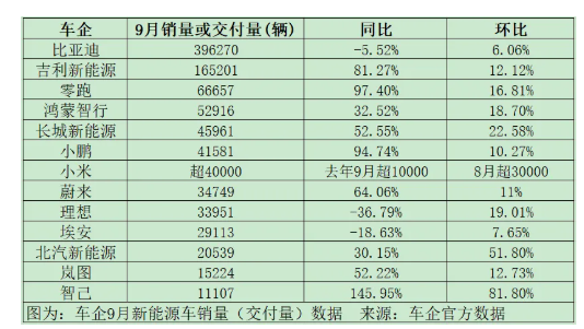 【導(dǎo)讀】9月造車新勢力全線大漲,比亞迪月度銷量同比下降