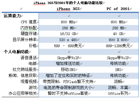 2007年,蘋果公司進軍手機市場,再次成就了一款明星級便攜數碼產品:iPhone。蘋果不再局限于定位在一家電腦公司,蘋果有成功的網絡、渠道平臺技術和服務,還有iPod、iPhone、AppleTV等消費電子類數碼產品。經過兩年內的幾次軟硬件升級,如今的iPhone 3GS已經可以媲美個人電腦的基本運算功能、同時豐富的娛樂功能加上便攜性,使其成為數碼生活的核心產品。